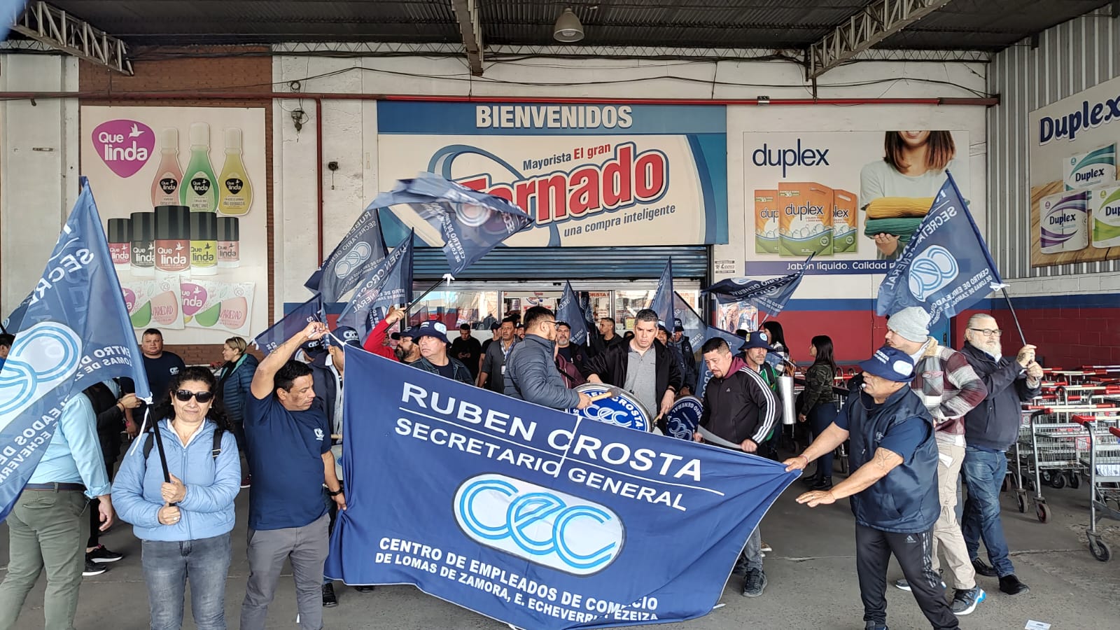 Hoy por la mañana un nutrido grupo de delegados y militantes del Sindicato de Empleados de Comercio de Lomas de Zamora, copó el ingreso a la sucursal Lomas del conocido mayorista Gran Tornado. Las reiteradas denuncias realizadas por el gremio, a pesar del reconocimiento de la situación por parte del Ministerio de Trabajo, parecen no hacer mella en una empresa que ha decidido ignorar los más elementales derechos laborales consagrados por la ley. “El Sr. Javier Marino, Gerente de Relaciones Laborales, compromete con su irresponsable acción a toda la empresa, boicoteando lo que debería ser un espacio de diálogo entre los trabajadores y el sector empresario a fin de resolver los problemas planteados”, expresó visiblemente molesto Rubén Crosta, Secretario General de los mercantiles lomenses. “El hostigamiento contra las compañeras y compañeros afiliados al gremio ya no admite paciencia alguna. Un compañero fue suspendido y dos más apercibidos por hechos descaradamente inventados. No se pagan horas extras ni feriados, amenazan a los empleados con despidos obligándolos a trabajar más allá de la jornada laboral y hasta el Ministerio de Trabajo encontró empleados en negro al realizar la inspección. ¿Hasta dónde debemos ser pacientes los trabajadores?”, continuó Crosta frente al local de la empresa donde los bombos no dejaban de sonar.