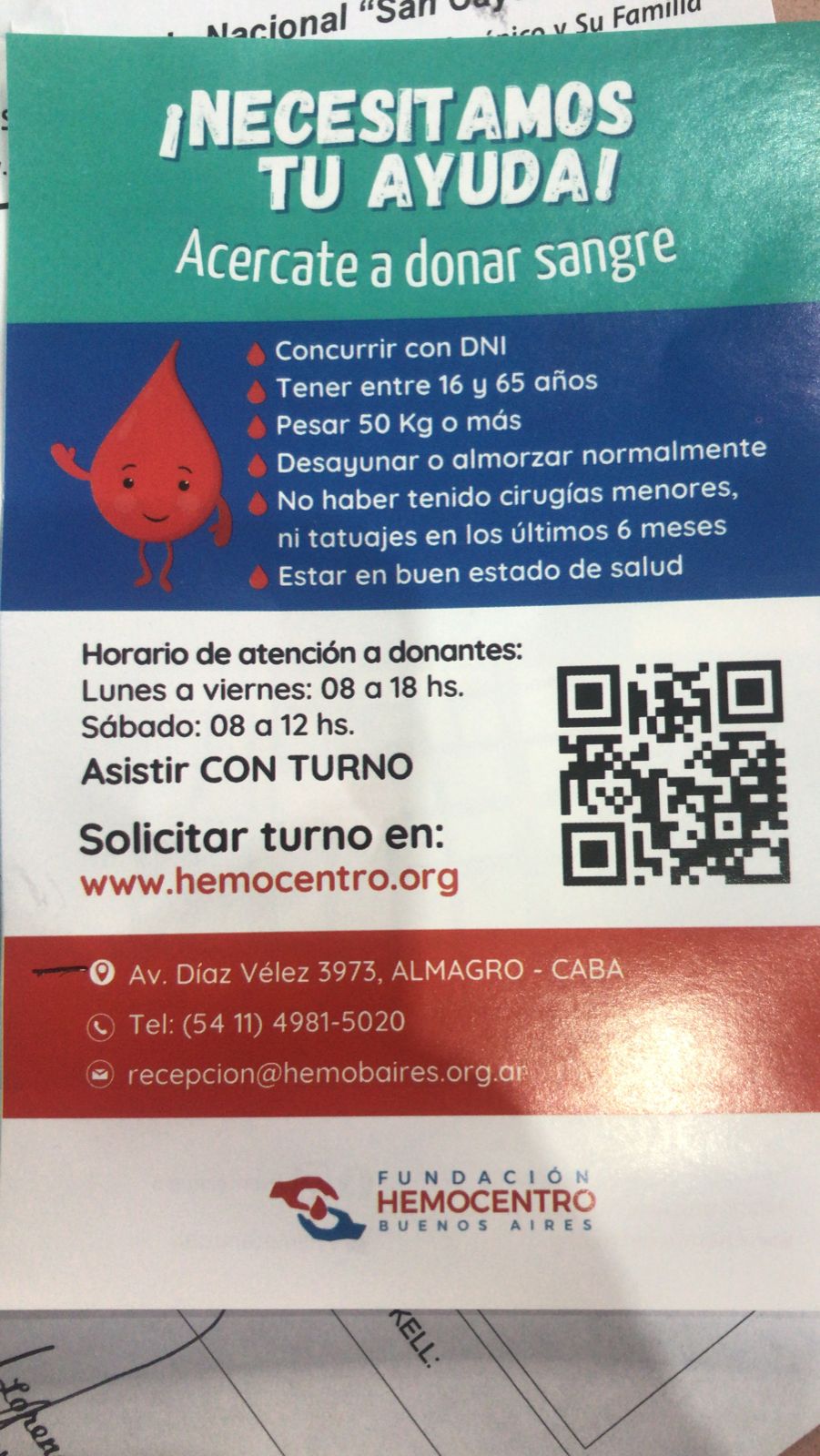Concurrir a Hemocentro Buenos Aires, Av. Díaz Vélez 3975, Almagro, CABA. Solicitar turno en : www.hemocentro.org