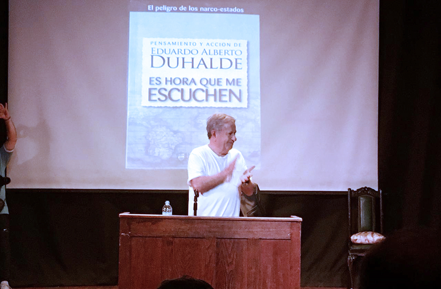 Duhalde mixturó la actividad bibliográfica con cuestiones políticas de estricta actualidad y por eso la actividad presentó ribetes más que destacables.